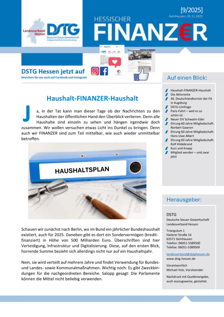 Hessische Finanzer 09/2025 Der Hessische Finanzer 09/2025 ist online.